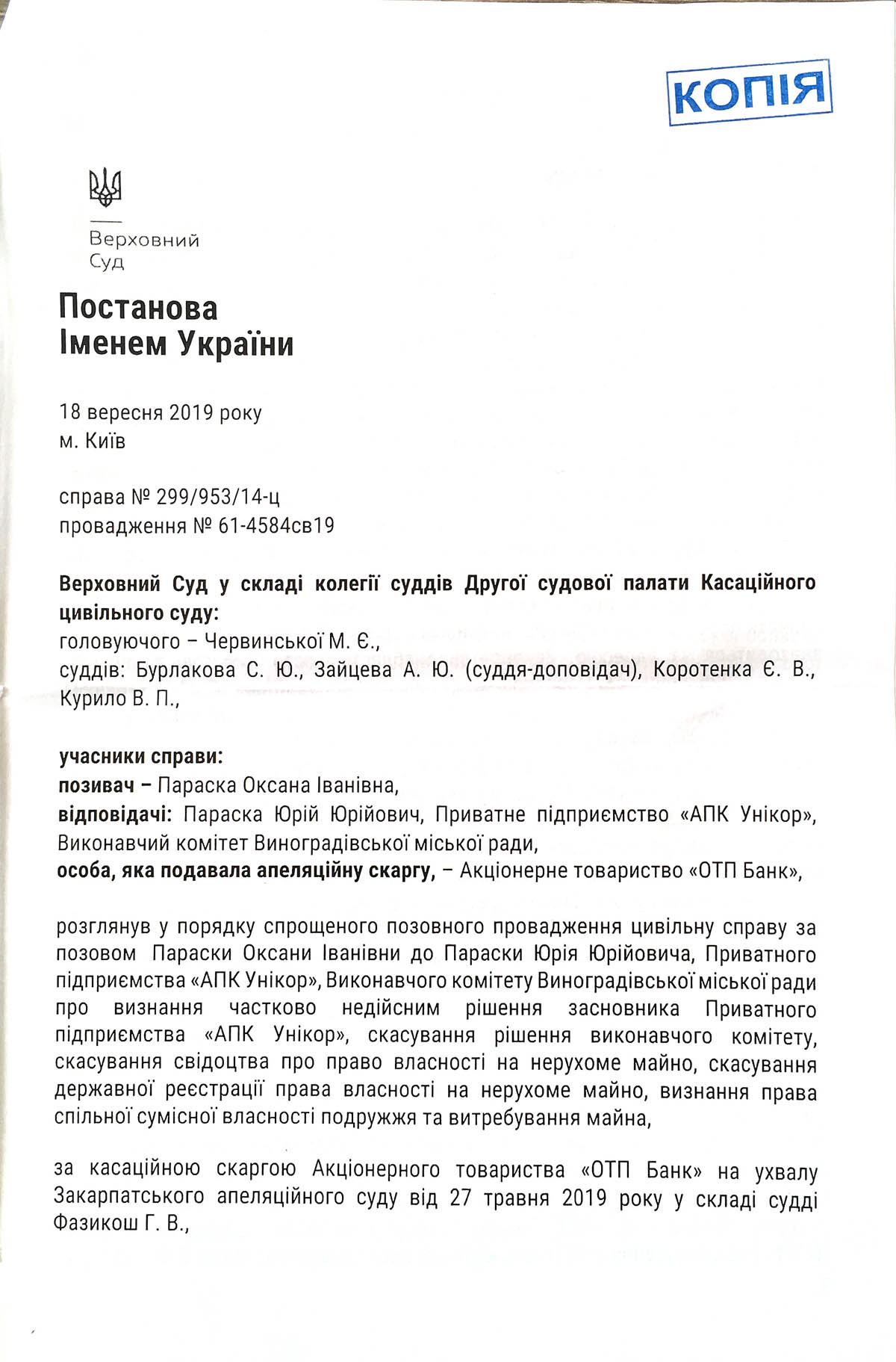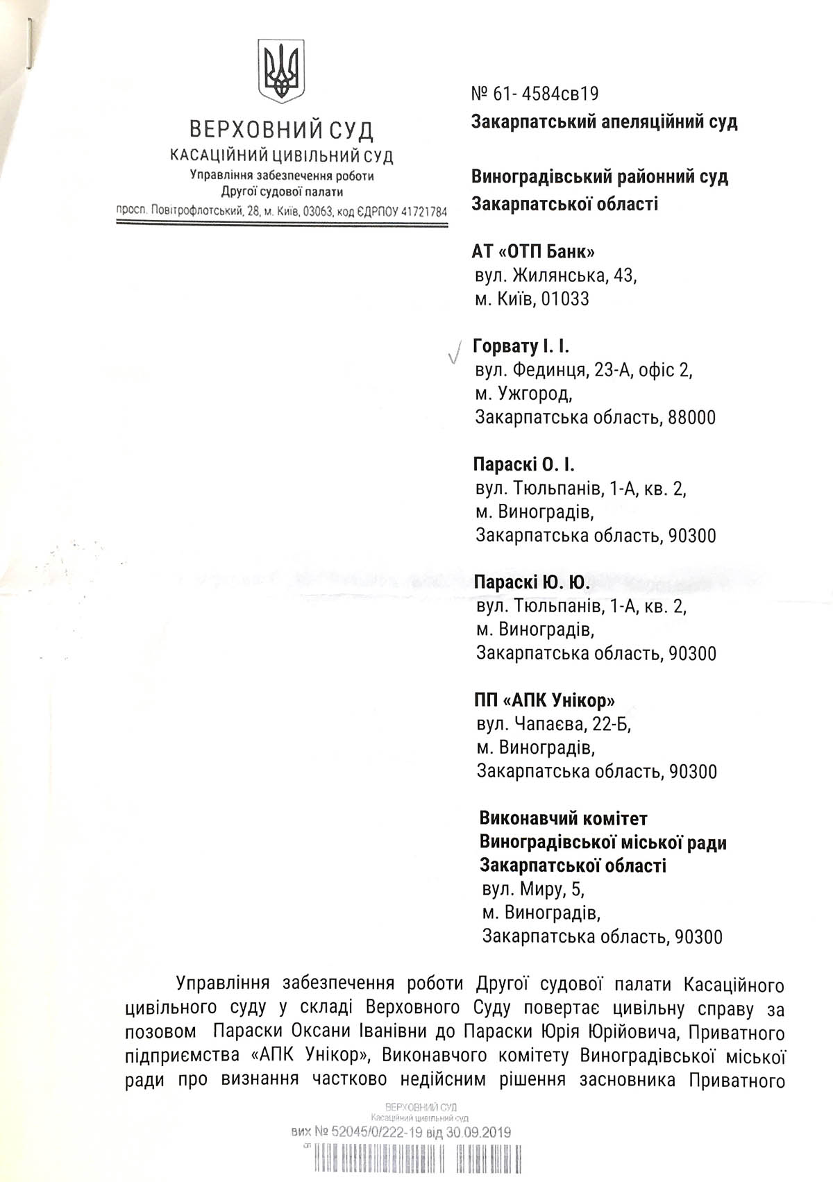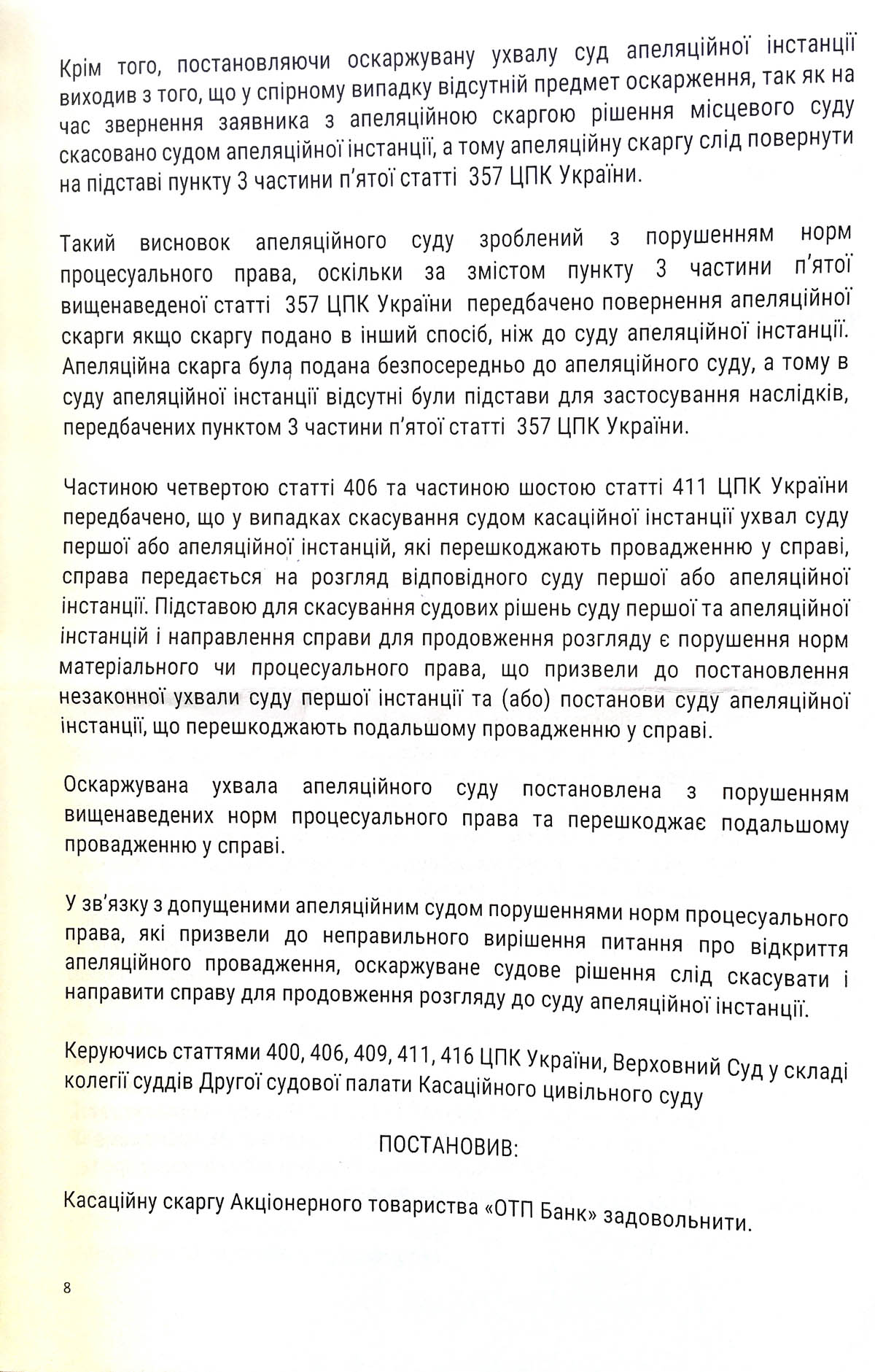 Касаційний цивільний суд Верховного Суду погодився з доводами нашої скарги, скасував ухвалу про повернення апеляційної скарги та направив справу для подальшого розгляду.