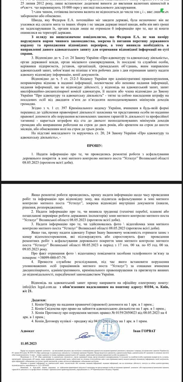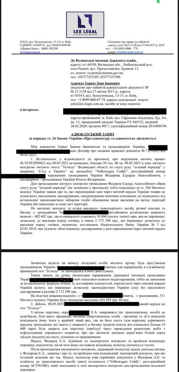Історія про те, як митні органи незаконно фіксують ніби незадекларовані великі валютні цінності, з тим щоби їх за рішенням суду в подальшому незаконно конфіскувати. Однак ми нашим клієнтам допомагаємо: спочатку отримаємо докази з відео-камер їх оборудок на митному посту (які в об’їзд камер змушують декларантів заводити в сіру зону), потім ми за рішенням слідчого судді обов’язково повернемо нашим клієнтам валюту, а далі будемо ініціювати кримінальне провадження відносно посадової особи митниці (митника), який займається фактично злочинною діяльністю, протиправними діями, за що слід покарати.