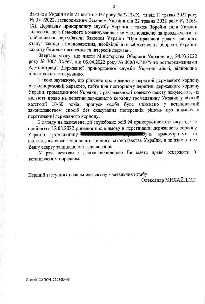 Так клієнт ЮК Lex Lеgal під час перетину державного кордону отримав відповідне Рішення про відмову в його перетині.