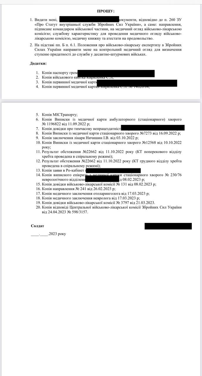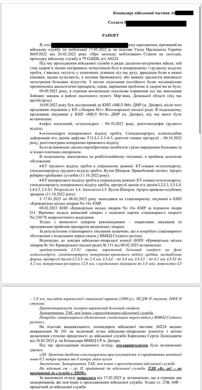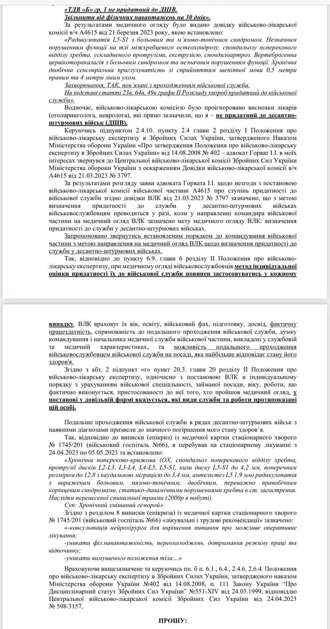 Підготовка рапорту нашого клієнта щодо неможливості проходження військової служби в одних військових підрозділах (ДШВ) та переведення в інший військовий підрозділ …в тил.