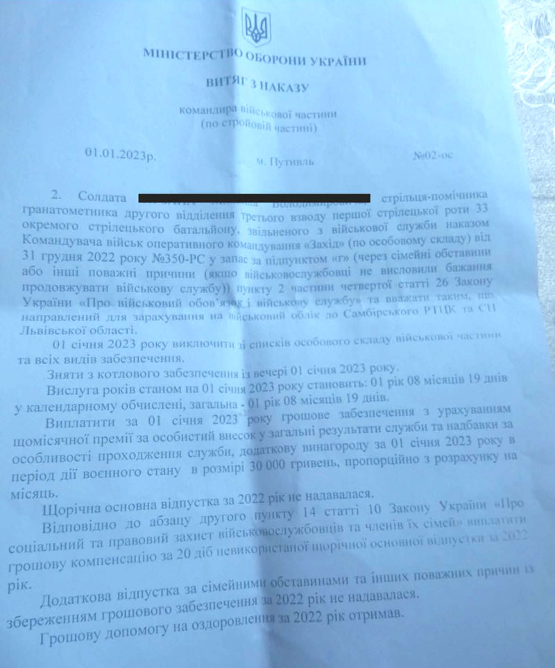 А ось ще один витяг з наказу про звільнення нашого Клієнта
