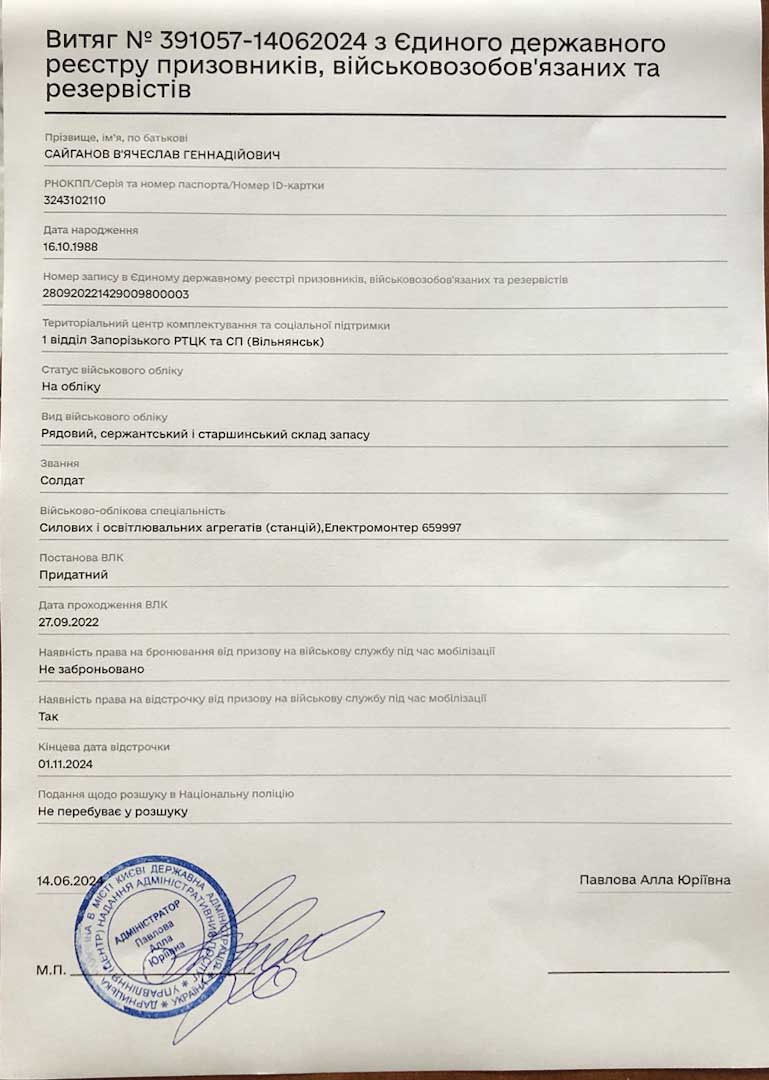 Саме такий алгоритм допоможе Вам виконати обов’язкову вимогу законодавця. Боріться за свої права, а наші юристи можуть Вам у цьому допомогти. На підтвердження додаємо витяг про оновлення військово-облікових даних з нашим Клієнтом.