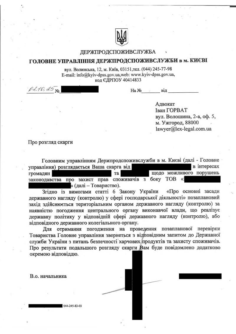 Строк розгляду такої скарги становить 30 днів, протягом яких відповідальні особи перевіряють наведені в ній обставини та надають оцінку долученим доказам, для того щоб прийняти рішення, чи необхідною є подальша перевірка та вжиття органом заходів захисту прав споживачів. Тому дуже важливо грамотно підійти до складення такої скарги, правильно зафіксувати наявні порушення та долучити належні докази. Відповідно, краще доручити це завдання професійним юристам.